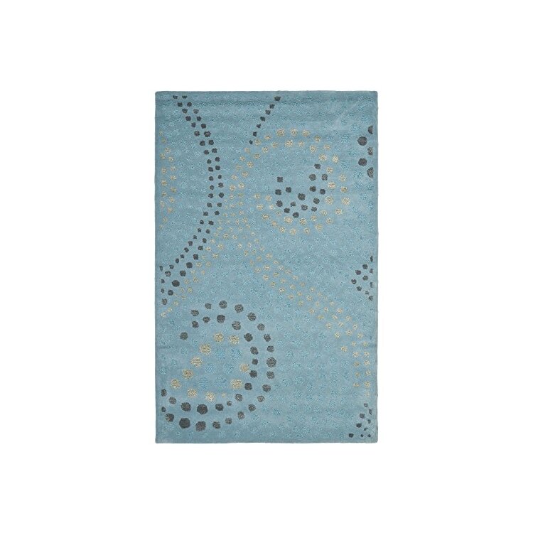 • Light Blue Grey Country Floral Jardin Style Rug 6x4 Small Rectangle Wool Pile - Safavieh image - 1