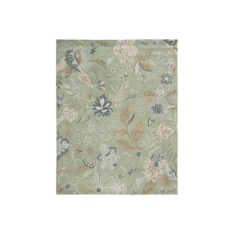 Light Green Country Floral Wool Pile Rug 6'x4 Small Rectangle