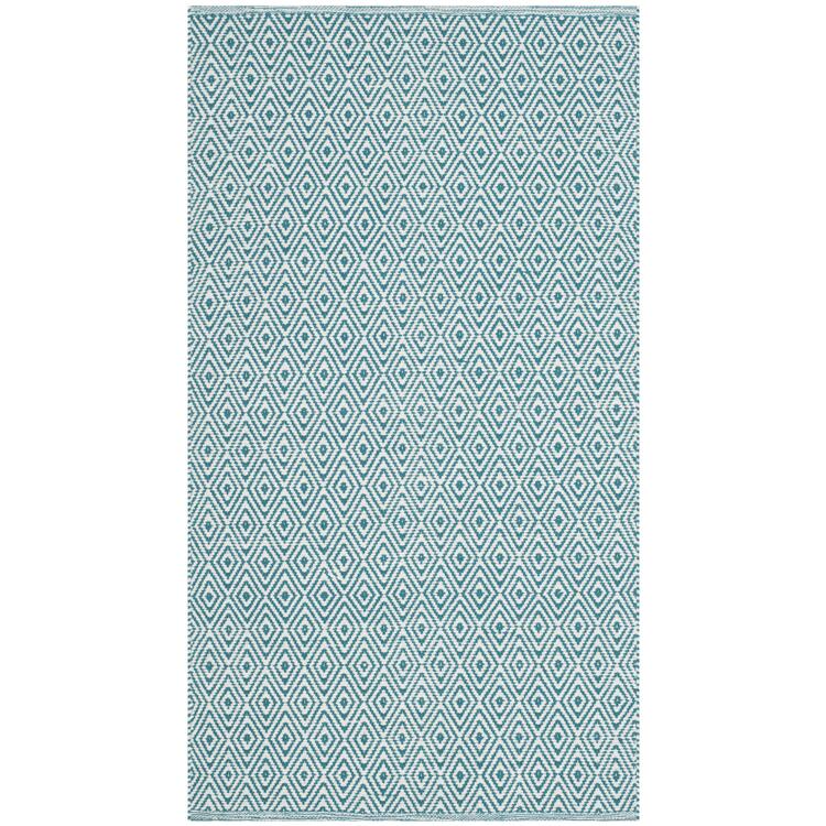 • Handmade Cotton Montauk Area Rug 96x27 inches Ivory/Aqua - Safavieh image - 1