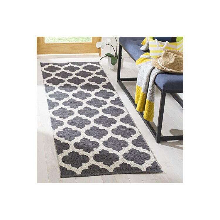 • Dark Grey / Ivory Cotton Runner Rug 2' - 6 x 4' Handmade Accent Rug - Safavieh image - 1