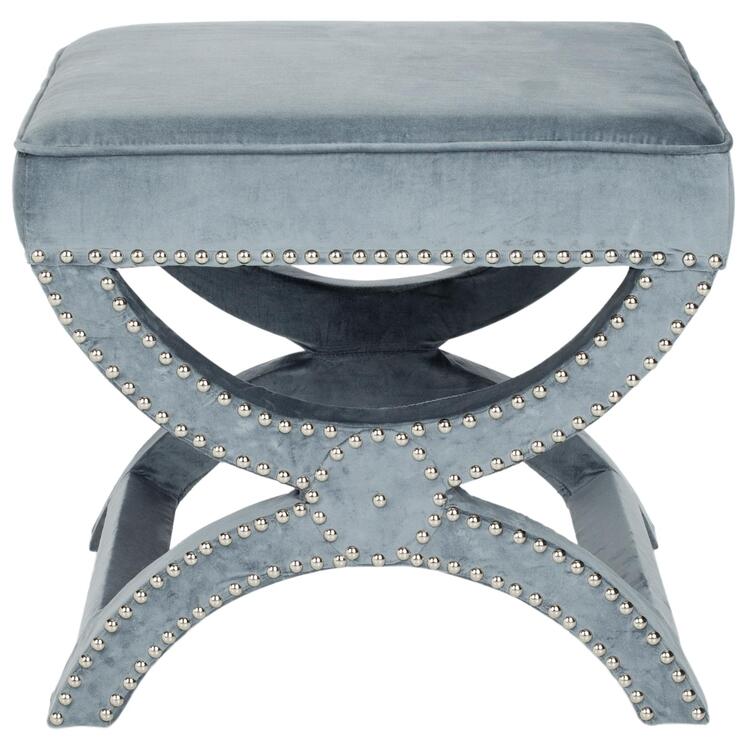 • Linen Ottomans Sea Mist Tone Nail Head Detailing - Safavieh image - 1