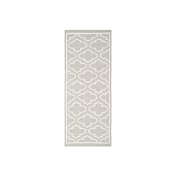 Grey/Ivory Flat Weave Geometric Runner 9x2'6 Wool/Banana Silk - Safavieh