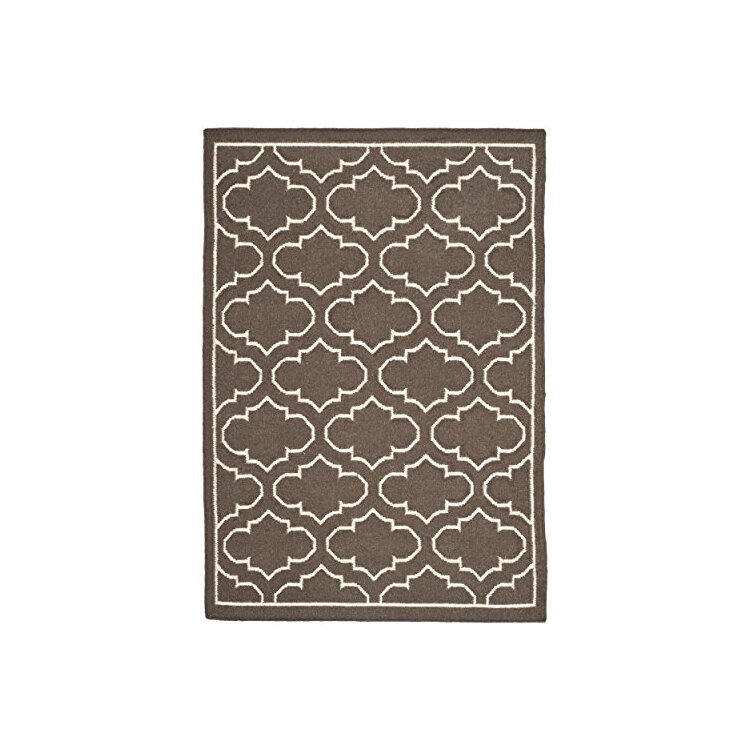 Flat Weave Dhurrie Contemporary Wool/Banana Silk Rug 5'x3' Brown/Ivory - Safavieh