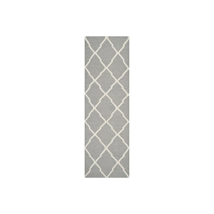 Flat Weave Geometric Rug Grey Ivory Contemporary Style 6'x2'6 Wool Cotton - Safavieh