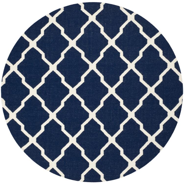 • Rustic Lodge Style Round Navy/Ivory Wool Cotton Rug 6'L x 6'W - Safavieh image - 1