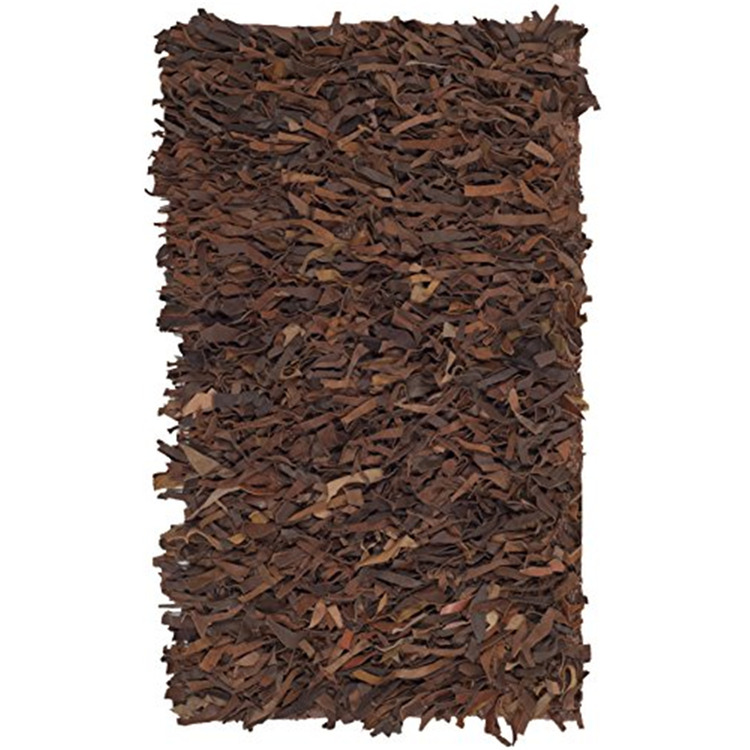 • Leather Shag Rug Saddle Brown Rectangle 24x36 Inch Hide Material - Safavieh image - 1