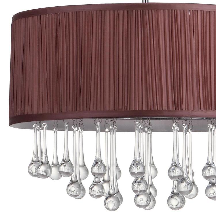 • Chrome Pendant Light Brown Cotton Drum Shade Crystal Orbs - Safavieh image - 1