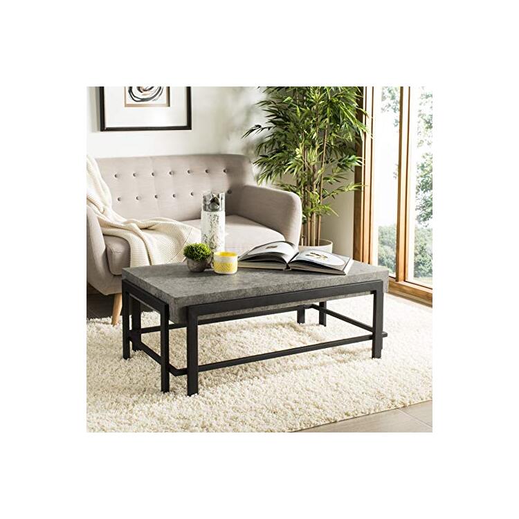• Rectangular Contemporary Coffee Table with Metal Legs and Glass Top - Safavieh image - 1