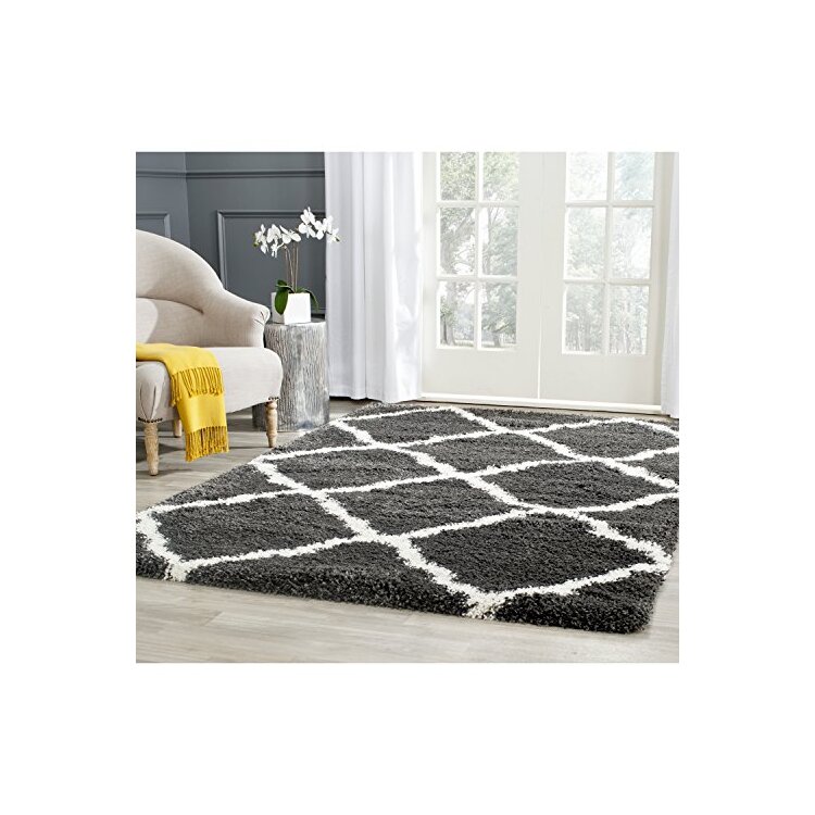 Charcoal Grey Shag Rug 6x4 Small Rectangle Ivory Geometric Design - Safavieh
