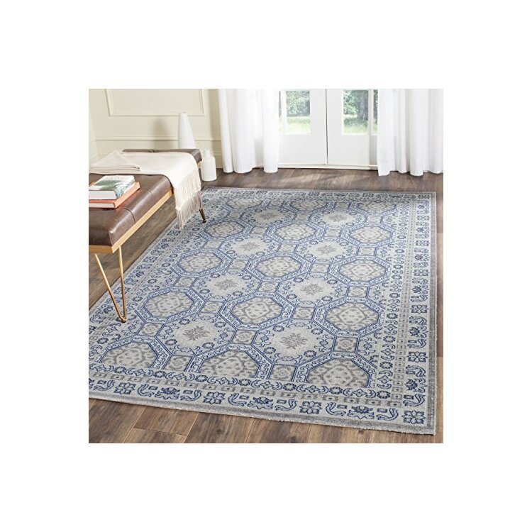 Traditional Silver Blue Cotton Jute Polypropylene Rug 9x6'7 - Safavieh