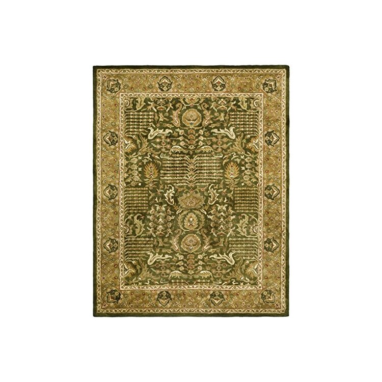 • Light Green/Gold Wool Pile Traditional Rectangle Rug 11'L x 8'3W - Safavieh image - 1