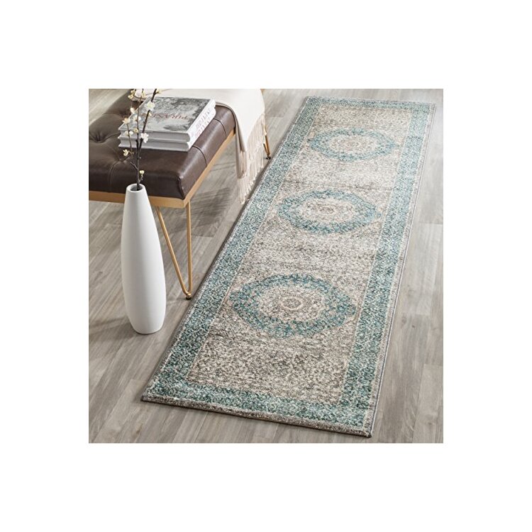 Light Grey/Blue Oversized Traditional Runner Rug 8'L x 2'2''W Polypropylene - Safavieh
