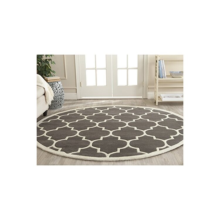 • Wool Pile Transitional Rug Dark Grey Ivory C Shape Round - Safavieh image - 1