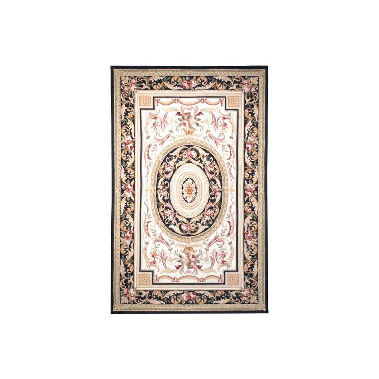Ivory/Black Wool Pile Transitional Rug 8x8 Round BShape Design - Safavieh