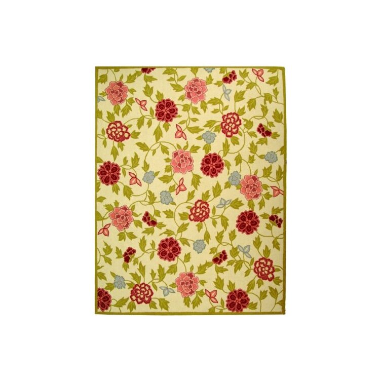 Transitional Wool Pile Rug Ivory/Green Small Rectangle Size 3'9x5'9 - Safavieh