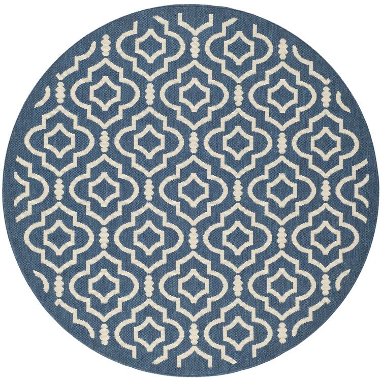 • Round Transitional Polypropylene Rug Navy/Beige 5'3L x 5'3W - Safavieh image - 1