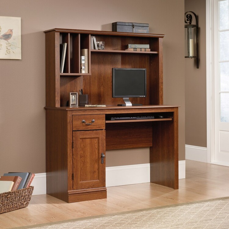 • Sauder Camden County Computer Desk With Hutch, Planked Cherry image - 1