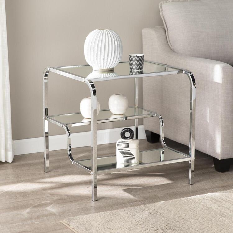 • Art Deco Chrome Mirrored Side Table for Living Room 2 Shelves - SEI image - 1