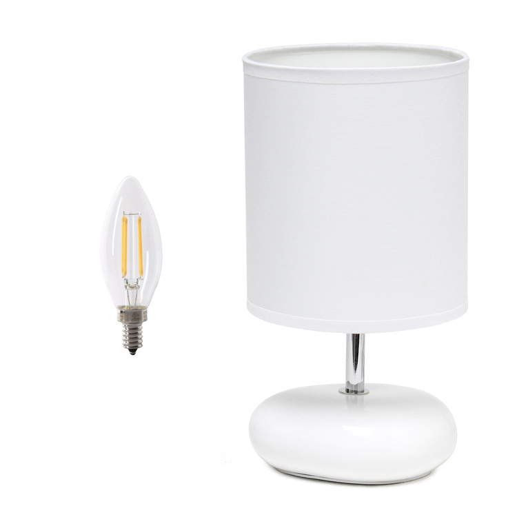 • Simple Designs 10.24" Stonies Small Stone Look Table Bedside Lamp with LED Bulb, White image - 1