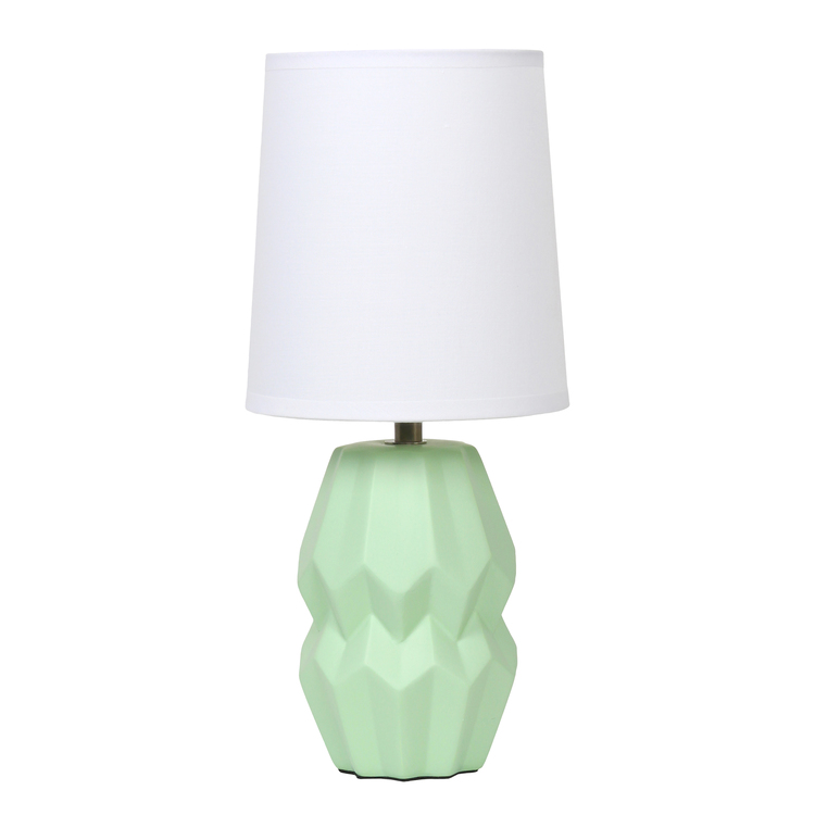 Simple Designs 12.5" Chic Glow Ceramic Geometric Table Lamp With White Fabric Shade,, For Bedroom, Office, Living Room, Dorm, Sage Green