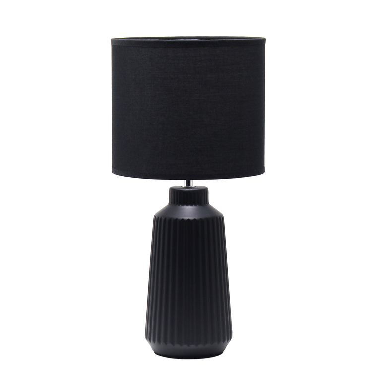 • Simple Designs 15.94" Glow & Flow Minimalist Grooved Ceramic Table Lamp, Monochromatic Fabric Shade, Textured Accent Lighting, For Bedroom, Office, Living Room,, Black image - 1