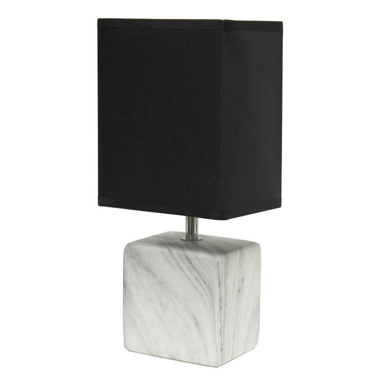 • Simple Designs Petite Marbled Ceramic Table Lamp with Fabric Shade, White with Black Shade image - 1