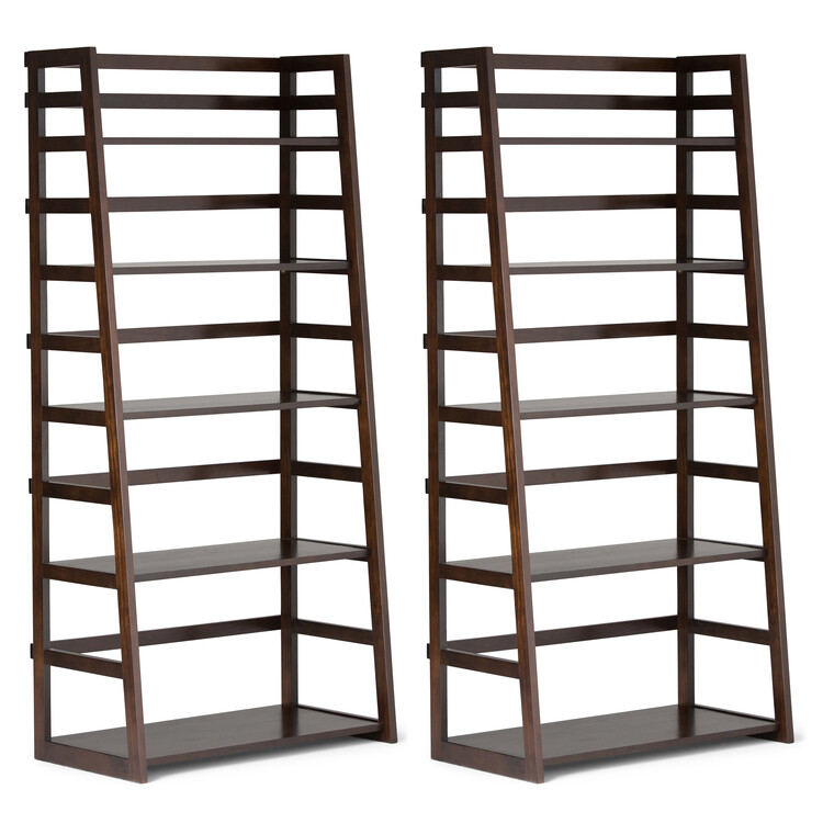• Simpli Home Acadian 30 inch Solid Wood 5 Shelf Ladder Bookcase in Brunette Brown (Set of 2) image - 1