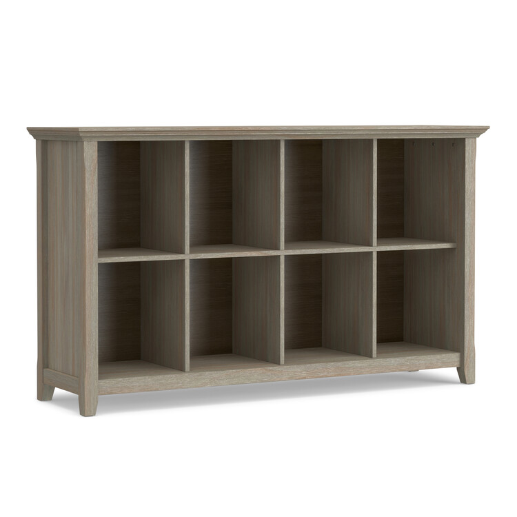 Simpli Home Acadian SOLID WOOD 57 inch Wide Transitional 8 Cube Storage Sofa Table