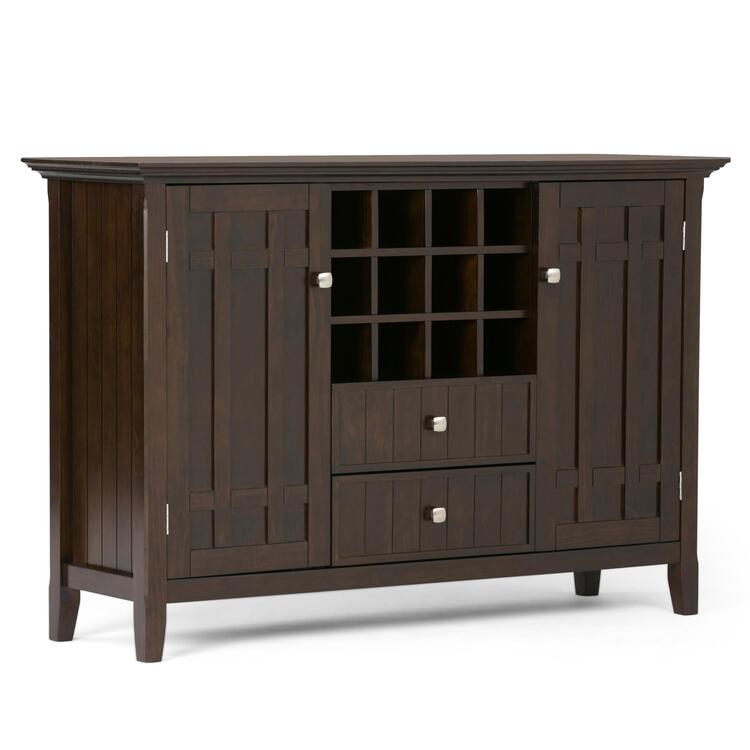 Simpli Home Bedford SOLID WOOD 54 inch Wide Transitional Sideboard Buffet Credenza and Wine Rack