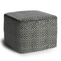 Simpli Home Briella Boho Square Woven Pouf in Grey and White Recycled PET Polyester