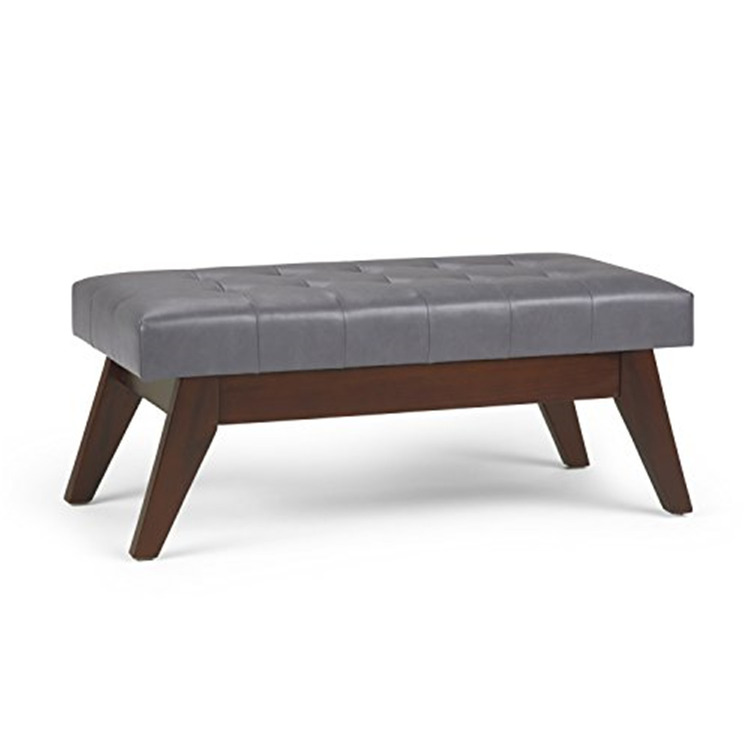 • Simpli Home Draper 40 inch Wide Mid Century Modern Rectangle Tufted Ottoman Bench in Distressed Saddle Brown Vegan Faux Leather, Assembled image - 1