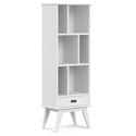 • Simpli Home Draper SOLID HARDWOOD 64 inch x 22 inch Mid Century Modern Bookcase and Storage Unit in White image - 1