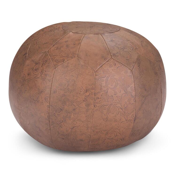 • Drury Boho Round Pouf in Brown Patterened Genuine Leather image - 1