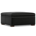 Simpli Home Gabbie 36 inch Wide Square Coffee Table Storage Ottoman in Midnight Black PU Vegan Leather