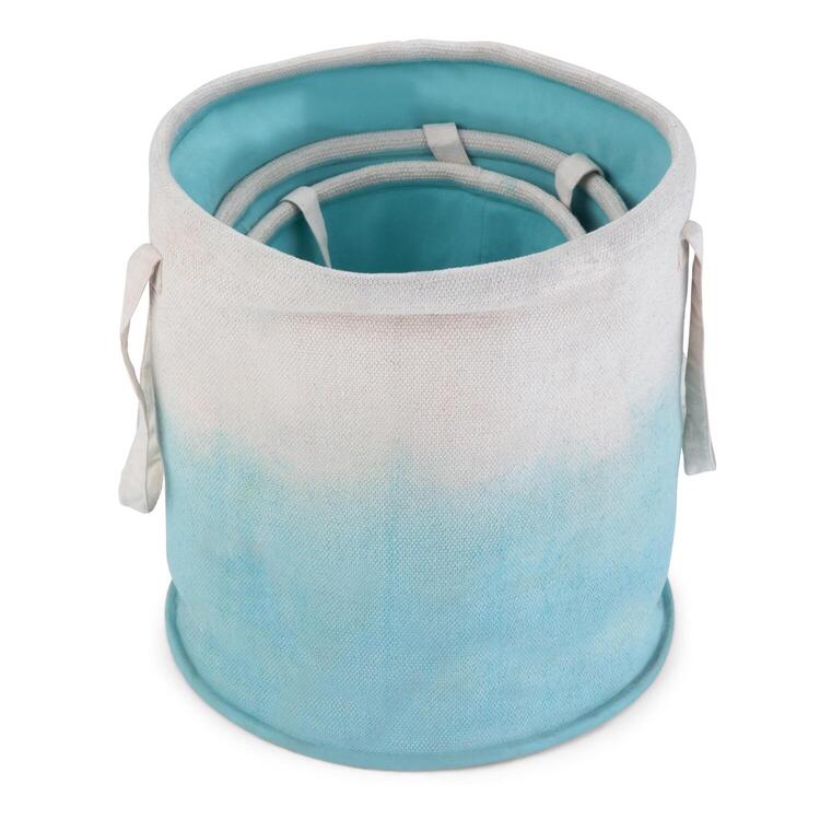 • 3pc Nesting Storage Baskets W/Wicker Design & Linen Handles - CCT Global Sourcing image - 1