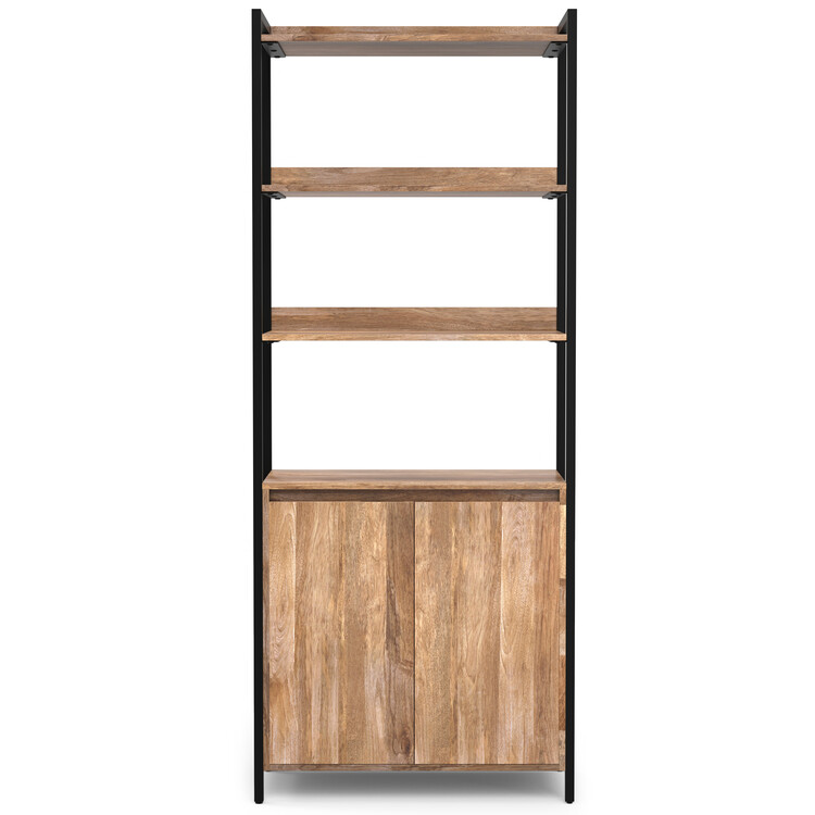 • Simpli Home Kelsey 30 inch Solid Mango 5 Shelf Bookcase with Doors in Natural Color (Set of 2) image - 1