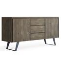 Simpli Home Lowry Solid Acacia Wood and Metal 60 inch Wide Modern Industrial Sideboard Buffet in Distressed Grey