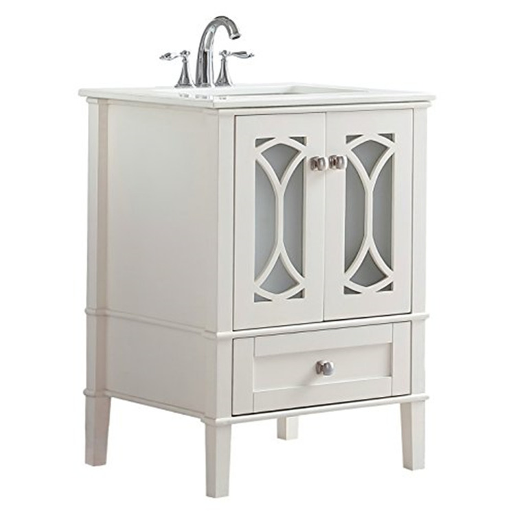 • Simpli Home Paige 24 inch Bath Vanity with White Engineered Quartz Marble Top image - 1