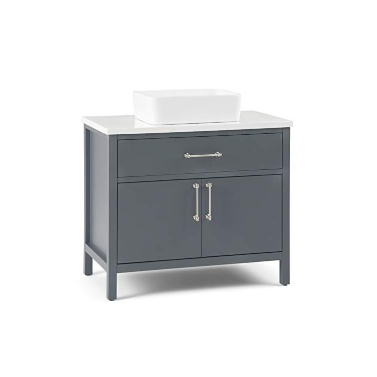 Simpli Home Patton 36 inch Bath Vanity with White Engineered Marble Top