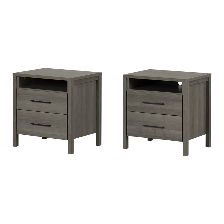South Shore Gray Maple Nightstands - Set of 2 - Modern Bedroom Storage