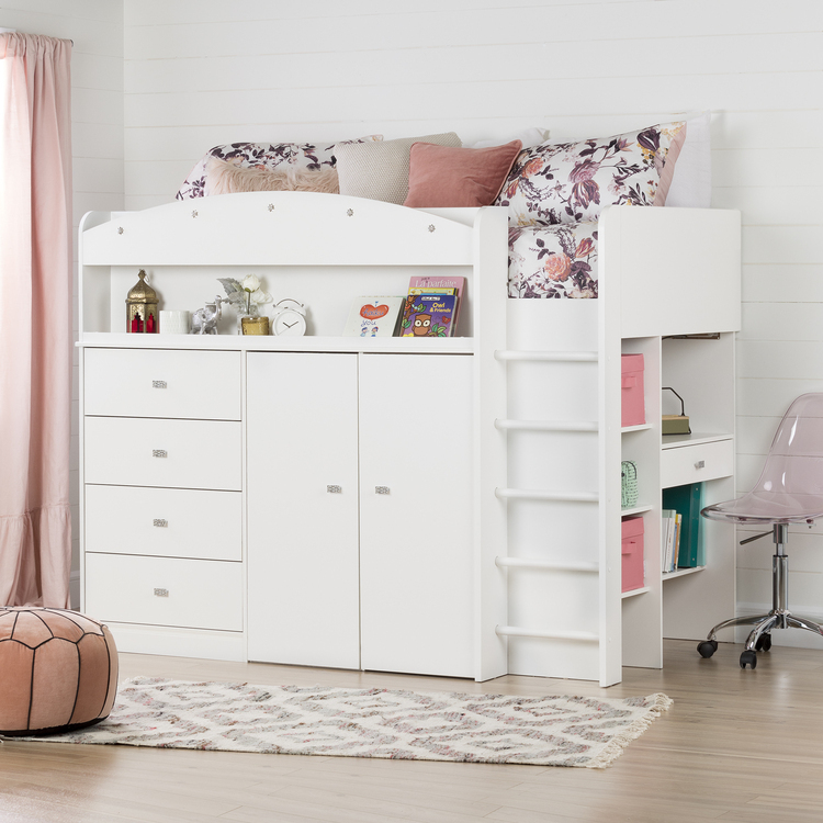 • South Shore Loft Bed with Desk - White Kids Bed & Storage image - 1