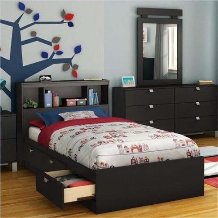• South Shore Twin Bookcase Bed with Storage - Solid Black Finish image - 1