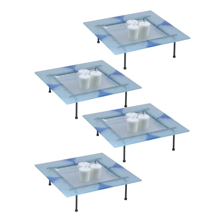 • Blue Triangle Fused Glass Candle Votives 1.5 H 4 Piece Set With Stands - Dale Tiffany Lamps image - 1