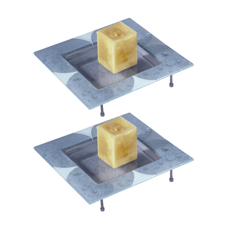 • 12 Inch Wide Blue Glass Candle Votives With Wooden Stands - Dale Tiffany Lamps image - 1