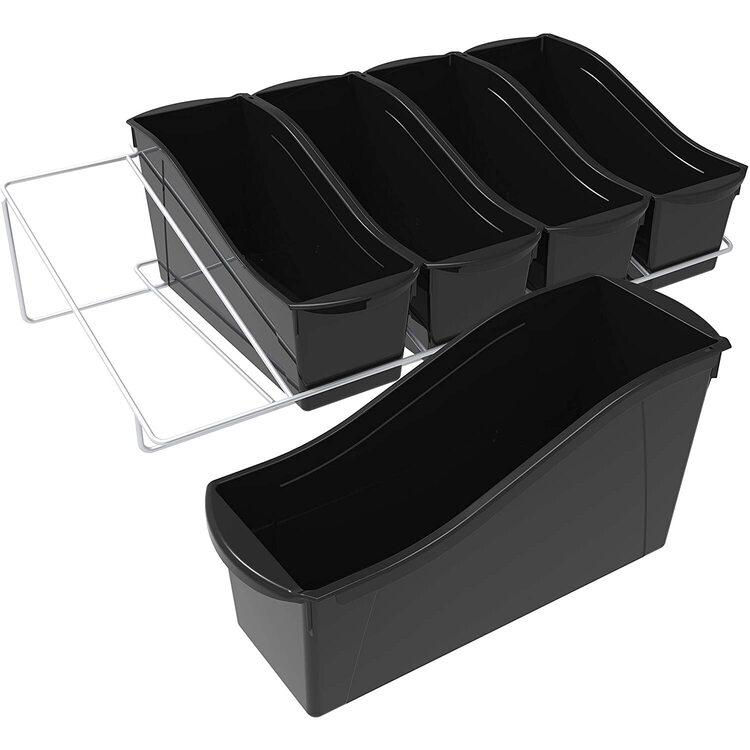 Storex Large Book Portable Cubby Bin, Metal Shelf Rack Included, 5-pack