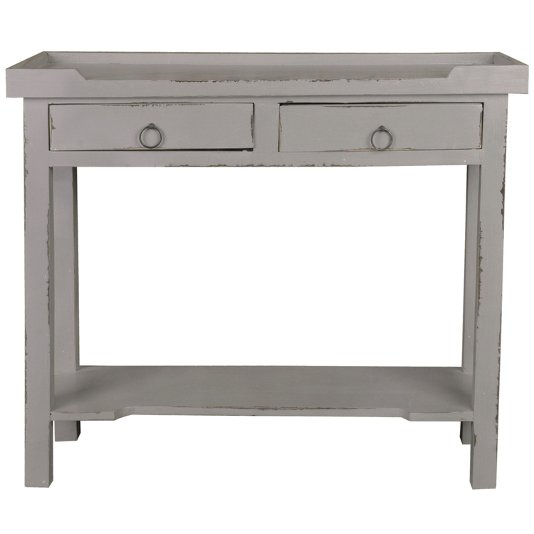 • Antique Gray Wood Sofa Console Table 2 Drawer Shelf Furniture image - 1