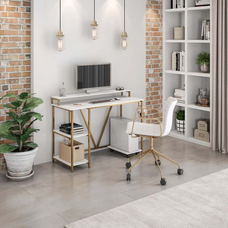 • Techni Mobili Industrial Writing Desk?- Wood Grain & Steel Frame image - 1