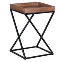The Urban Port 22 Inch Industrial End Side Table with Mango Wood Tray Top, X Shape Iron Frame, Brown, Black