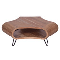 • The Urban Port 37 Inch Coffee Table, Handcrafted Curved Hexagon Shape with Open Shelf, Natural Brown Acacia Wood, Iron Legs image - 1