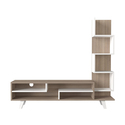 The Urban Port 59 Inch Modern Wood TV Console Entertainment Center, Stacked Shelves, White and Oak Brown
